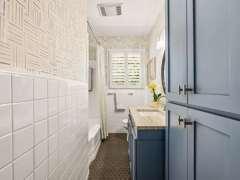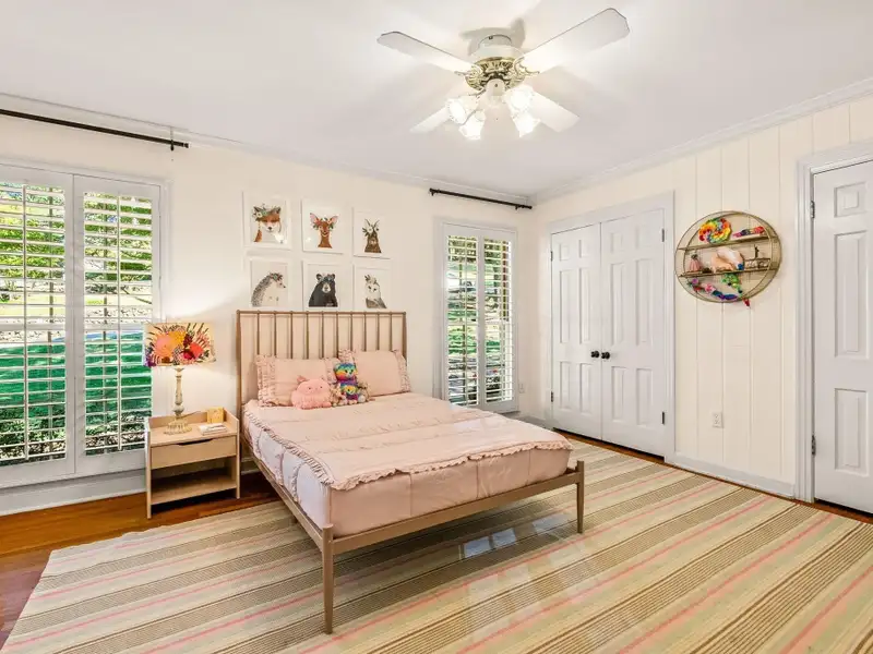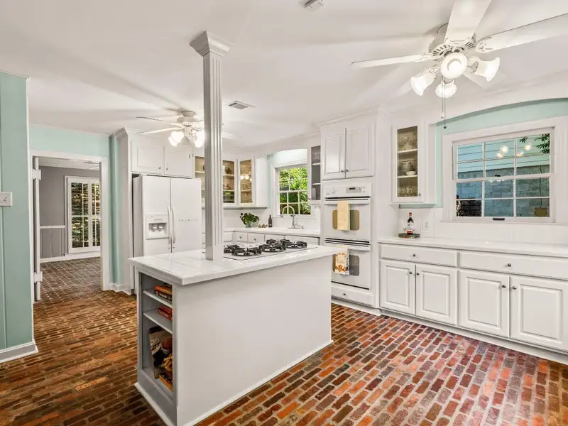 - Plantation shutters and exposed brick floors