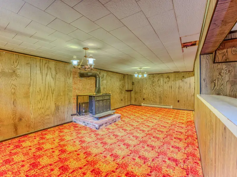 - Spacious rec room with wood stove and bar