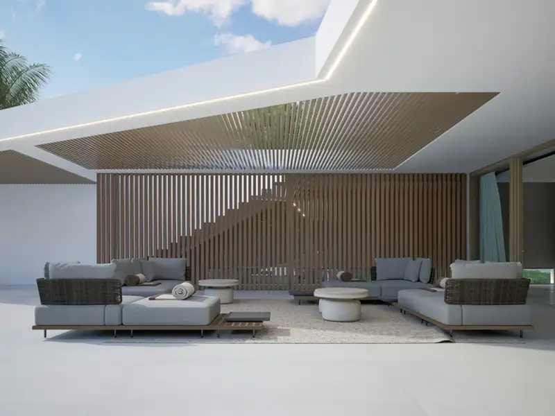 This modern villa, filled with natural light from its large windows, is intended to be the ideal refuge for its inhabitants. In a prime, exclusive location, it has been thought through to the smallest detail. Only high-quality materials have been used to make this a luxurious, comfortable home, full of privacy and suitable for welcoming family and friends.