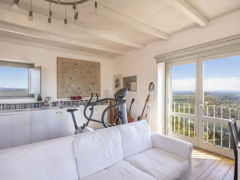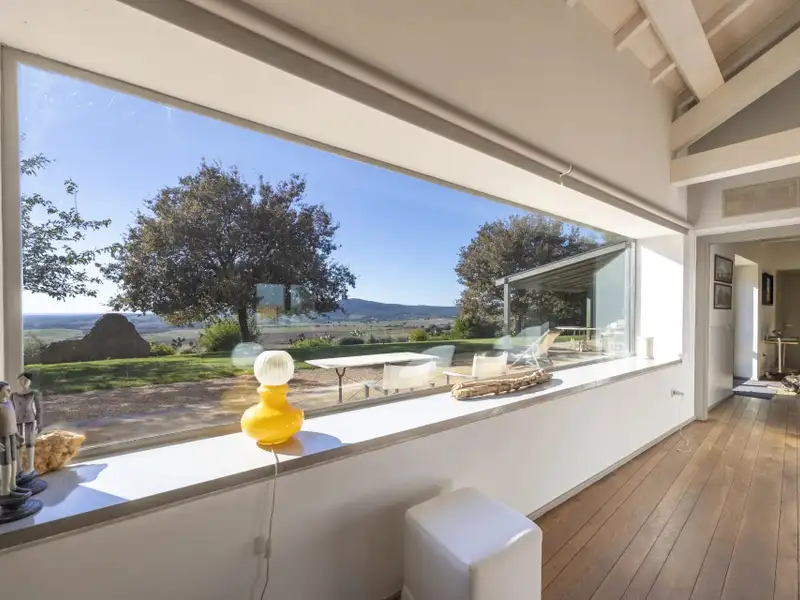 In one of the most authentic and unspoiled landscapes of Tuscany, among the gentle Maremma hills and just a few kilometers from Capalbio, stands this extraordinary villa, nestled within an enchanting olive grove. A residence that captivates with its dominant position, offering breathtaking views of the sea and the island of Giannutri: a panorama that changes color throughout the day, glowing fiery red at sunset.