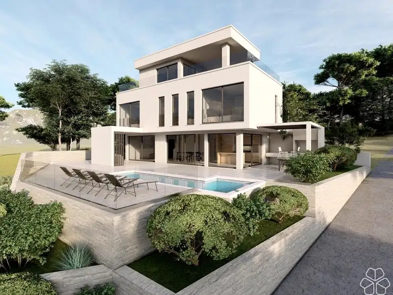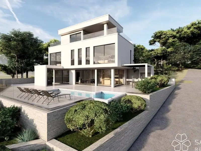 VILLA MILNA1 - four levels - area 236 m2 (3 bedrooms + 3 bathrooms + 3 terraces + wellness area + tavern) + pool + 3 garage parking spaces + yard = €990,000