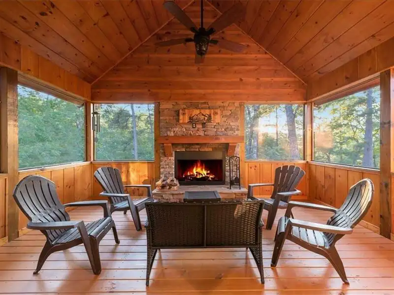 - Screened-in porch for outdoor comfort