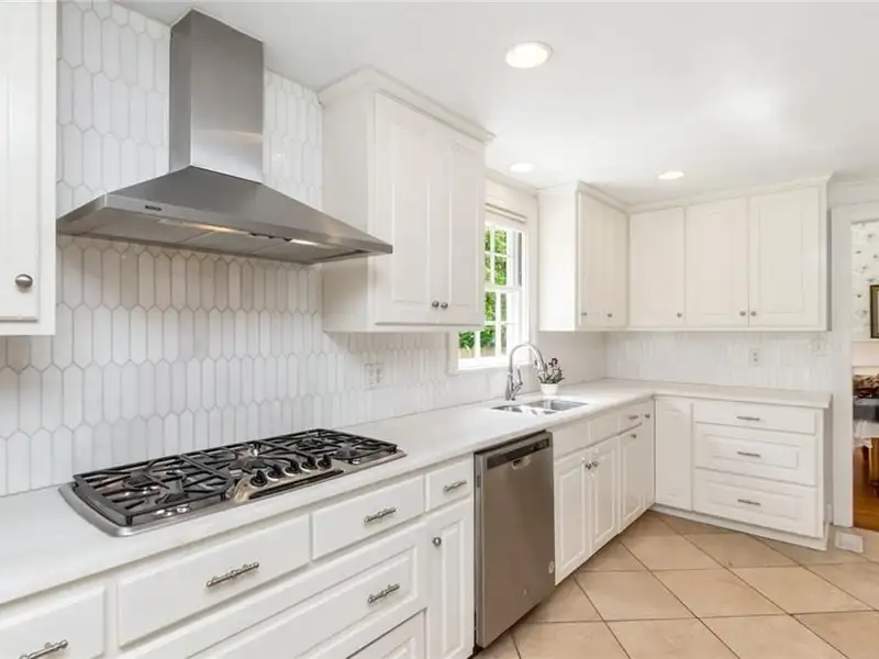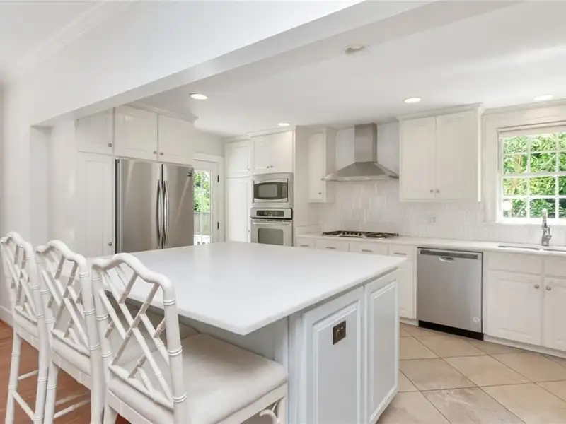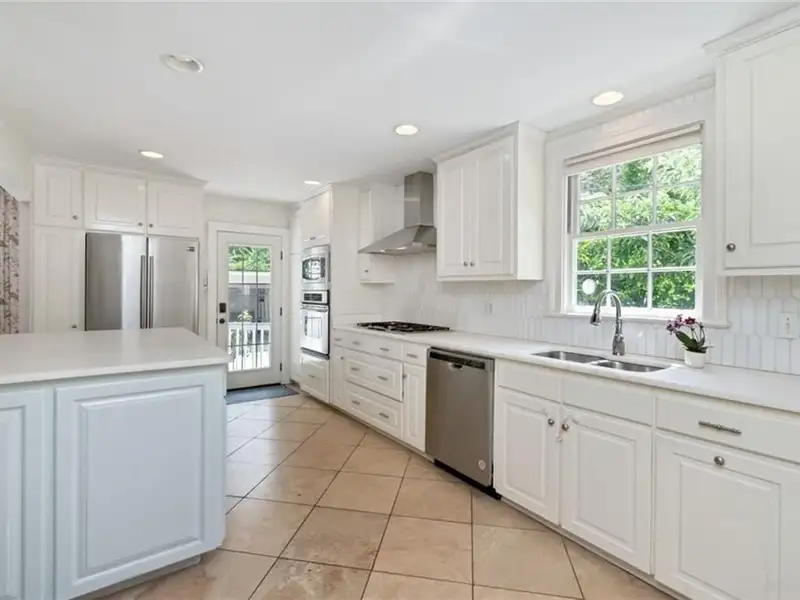 - Updated kitchen with marble countertops, gas cooktop