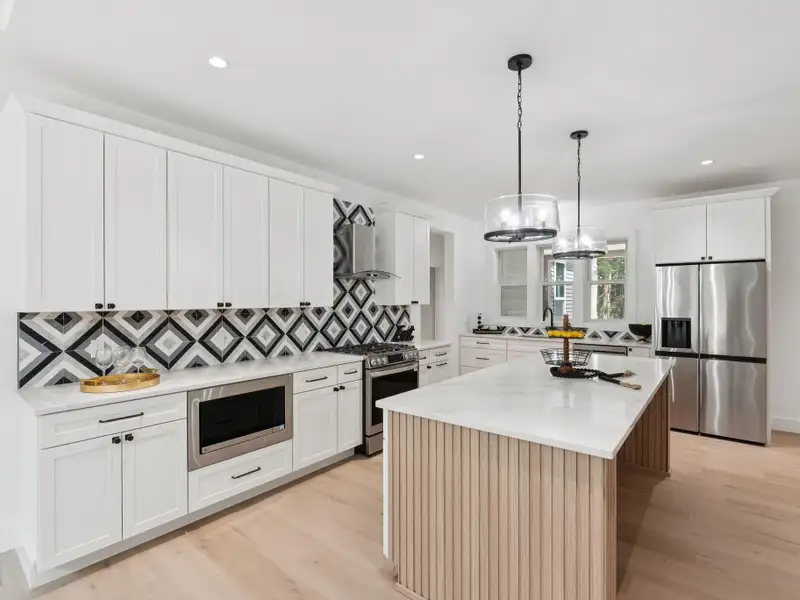 - Open kitchen with quartz countertops