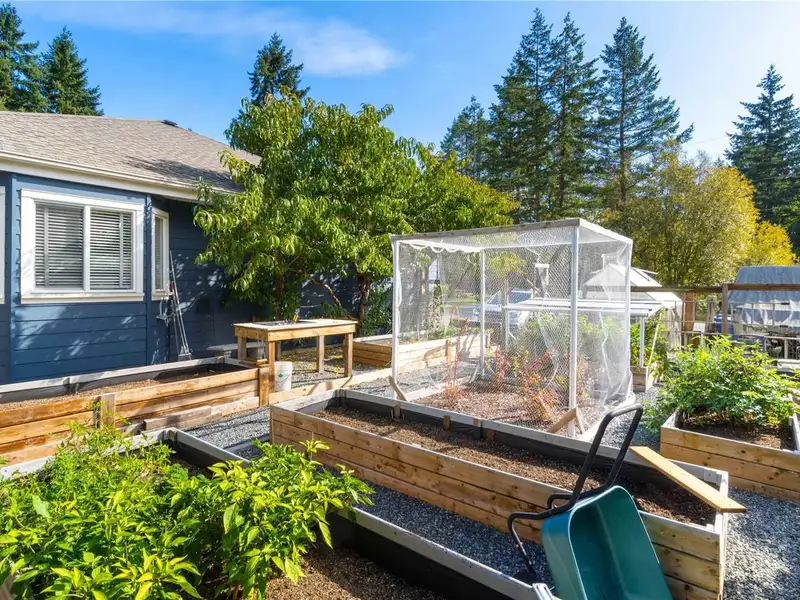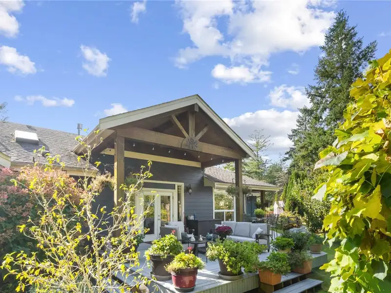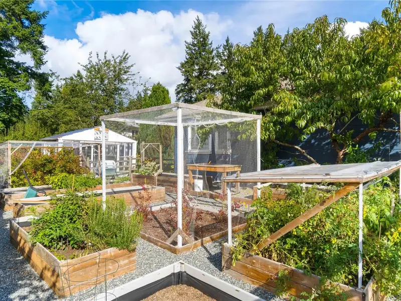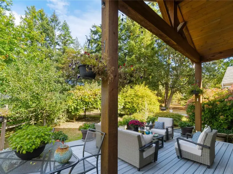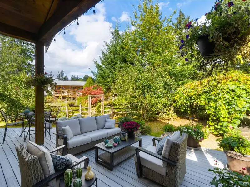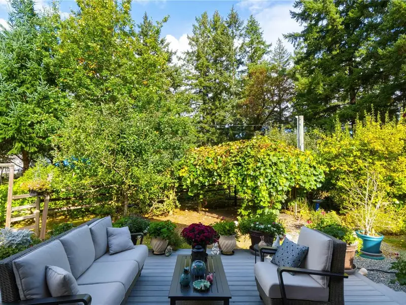 - Large deck with garden and fruit trees