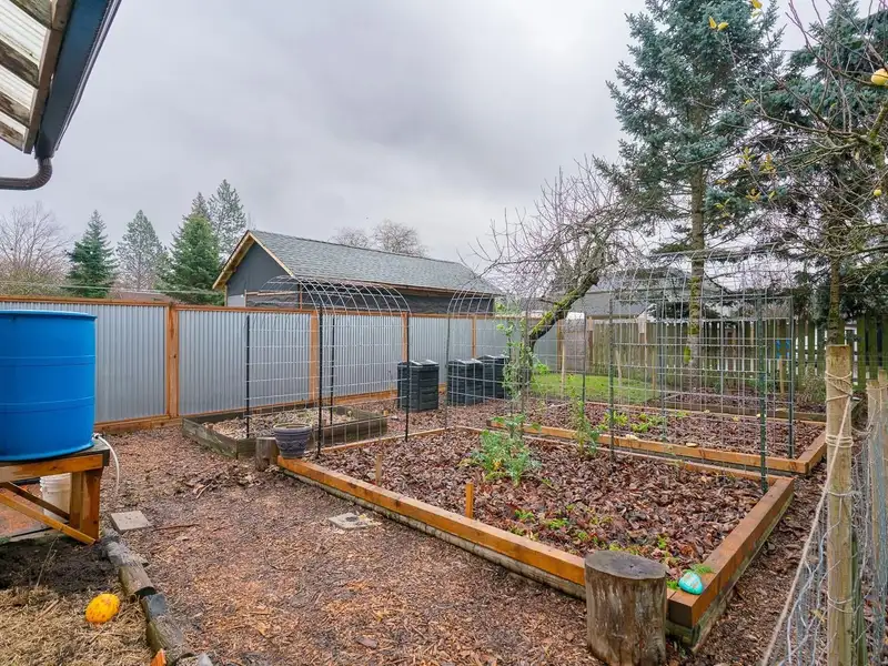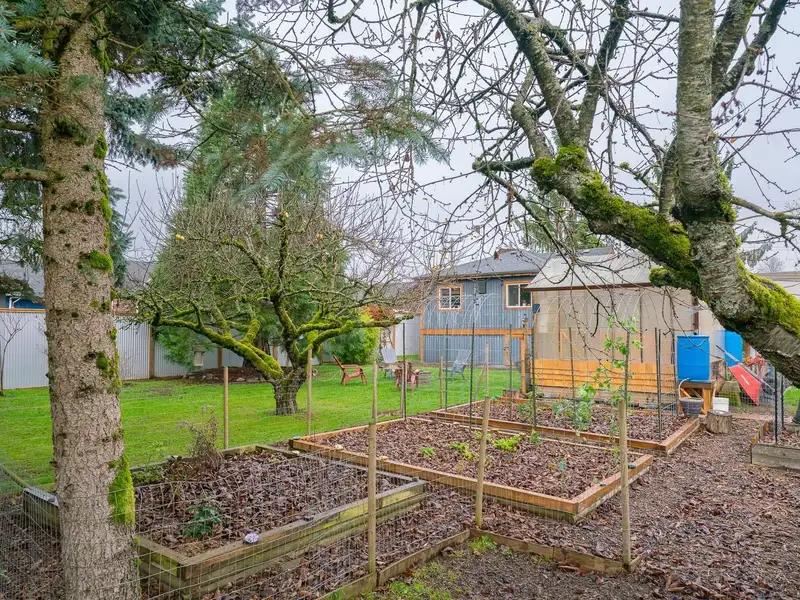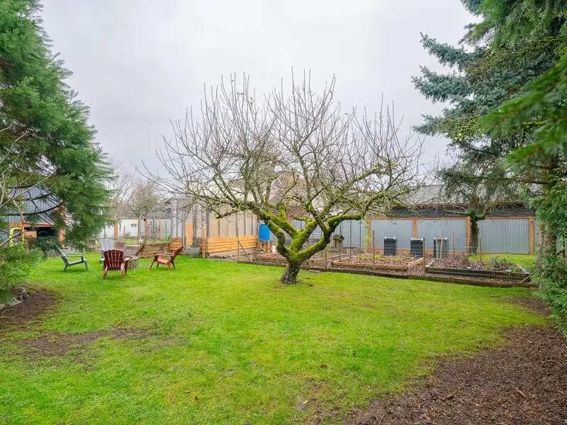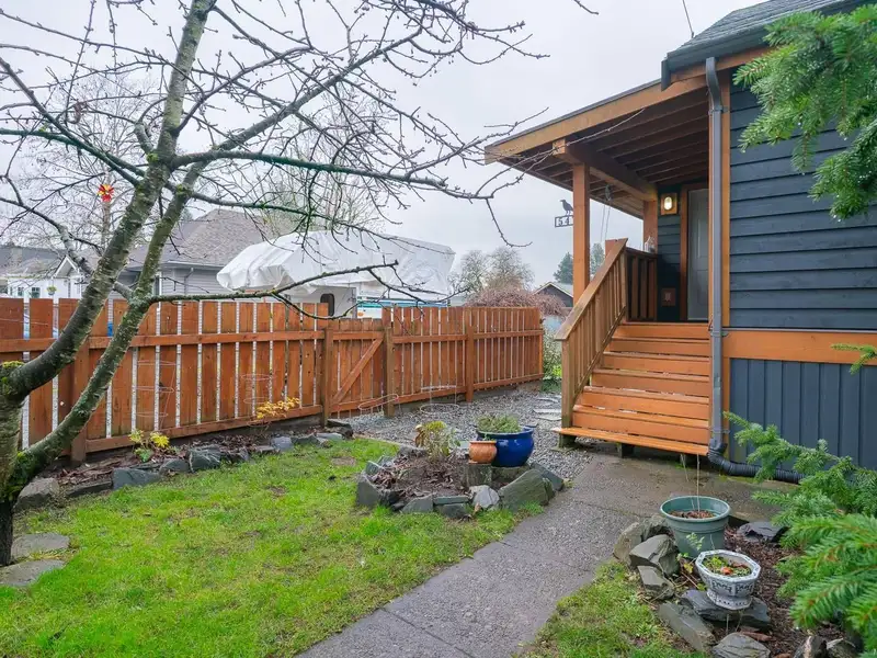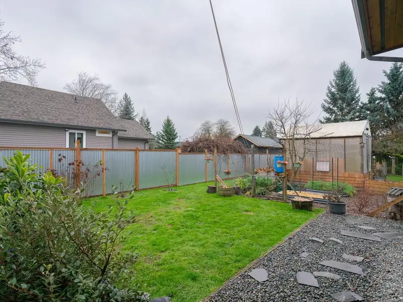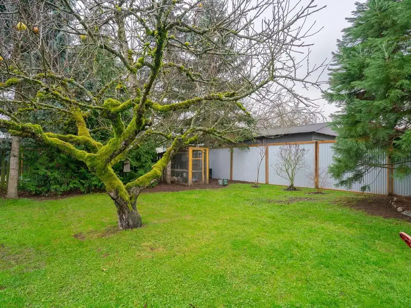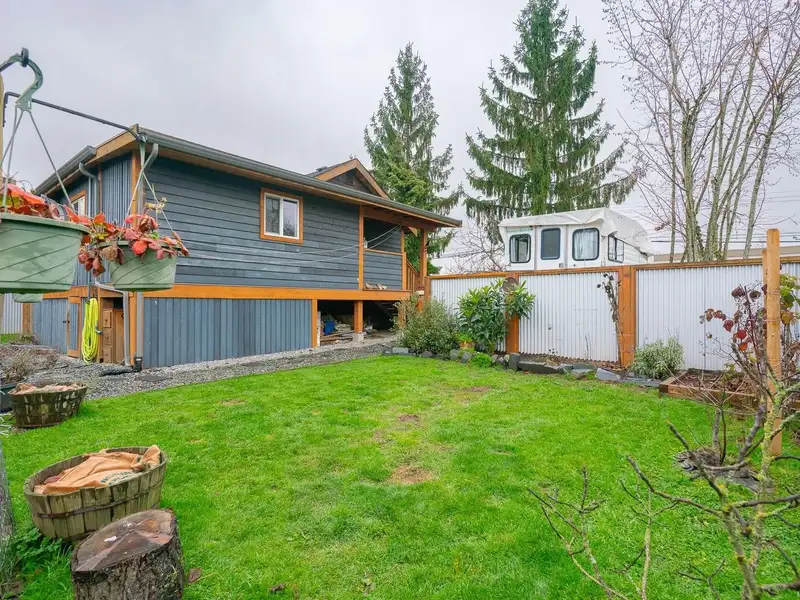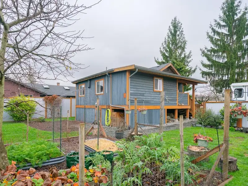 Cute as a button! In this price point it's rare to find a move in ready single family home, but here it is. 1 Bedroom plus Den, 1 Bathroom home. Cozy and spotless with an extremely functional layout, offering ample living area, kitchen with counter space, cabinetry and dining, including an office nook. The Den is currently in use as a laundry utility room, but creativity allows for many other options. The star of this listing is truly the property, a private fenced gardeners paradise. The flat almost 8700sqft lot with mature trees features lane access (allowing future potential of carriage home), greenhouse, chicken coop, fire pit area, rv parking and meticulously maintained gardens. Further items to note: basement storage/workshop for bikes, kayaks, tools etc. laundry hookup in the basement and two covered entries to the home. Already prepped for pets with secured fencing. Enjoy this convenient central location within walking distance to shopping, transit, schools, parks and trails.