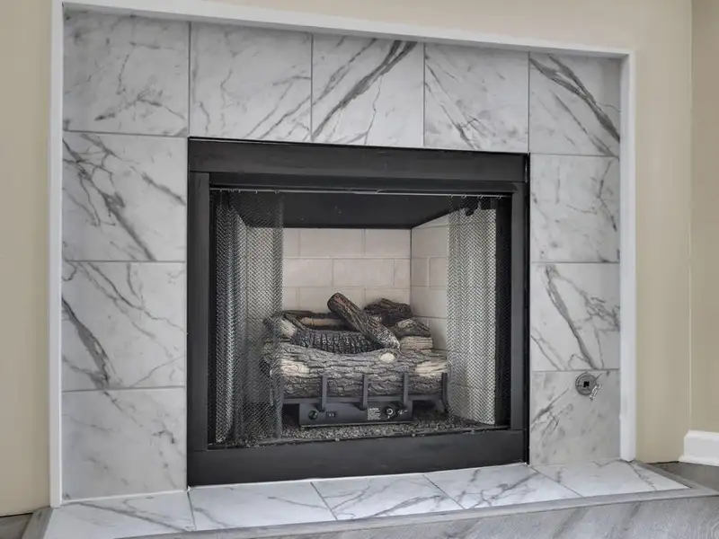 - Modern fireplace with upgraded tile