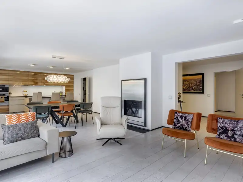- Bright living room with fireplace