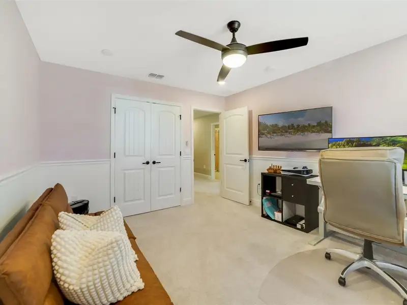 Discover expansive living and modern sophistication in this STUNNING 5-bedroom, 3-bath home with a spacious, peaceful backyard in the highly desirable Oakland Trails community. Offering over 3,500 SQUARE FEET of beautifully designed space and built in 2019, this residence combines contemporary comfort with UPSCALE UPGRADES—creating a home that truly feels “better than new.” Step inside to an inviting OPEN-CONCEPT LAYOUT, where the chef’s kitchen overlooks the spacious living area. Recessed lighting, NEW TILE FLOORING on the main level (2023), and ceiling fans throughout (2020) elevate the home’s comfort and style. The entire home is also PREWIRED WITH CAT 6, ideal for high-speed connectivity. The DREAM KITCHEN is a showstopper with stylish cabinetry, stone countertops, a breakfast bar, built-in oven, cooktop stove with POT FILLER, tile backsplash, walk-in pantry, and a GALLEY-STYLE COFFEE BAR AREA—perfect for morning routines or entertaining. A spacious Kitchen dinette area overlooks the backyard, adding a warm and functional touch to the heart of the home. In the Living room, enjoy a CUSTOM ACCENT WALL (2023) and views of the large backyard through dual sliding glass doors. A separate Dining room offers flexibility for family gatherings or can easily serve as a formal living room. The first floor also includes a VERSATILE OFFICE/PLAYROOM, convenient under-stair storage, and ONE OF THE FIVE BEDROOMS—complete with laminate wood flooring—located next to a full bathroom, providing a perfect space for guests or multigenerational living. Upstairs, a GENEROUS LOFT creates a perfect secondary living area. The UPDATED PRIMARY SUITE (2025) features a beautiful tray ceiling, a LUXURIOUS EN SUITE BATH with dual vanities, a step-in shower, and a huge walk-in closet. Three additional bedrooms and another full bath offer plenty of comfortable space for family and guests. A paver driveway leads to the generous 3-CAR GARAGE featuring epoxy flooring, additional kitchen-style cabinetry, and PREWIRING for an electric vehicle. Outside, enjoy a large covered patio and an EXPANSIVE BACKYARD, ideal for future customization, gatherings, or play. Oakland Trails is loved for its peaceful setting and small-town charm, offering access to the West Orange Trail, playgrounds, green spaces, and TOP-RATED SCHOOLS. Ideally positioned near DOWNTOWN WINTER GARDEN, residents enjoy quaint dining and gatherings spots, PLANT STREET MARKET, charming shops, and easy access to SR 429 for seamless commuting. Every detail has been thoughtfully crafted for ELEVATED LIVING—come experience the exceptional quality and SOPHISTICATION this home offers. Schedule your showing today!