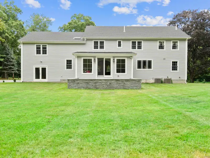 - Bluestone patio with large flat backyard