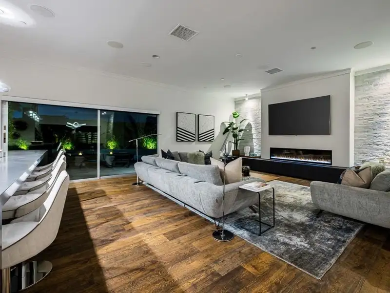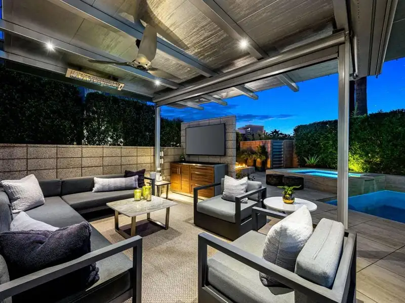 - Outdoor kitchen with built-in BBQ and refrigerator
