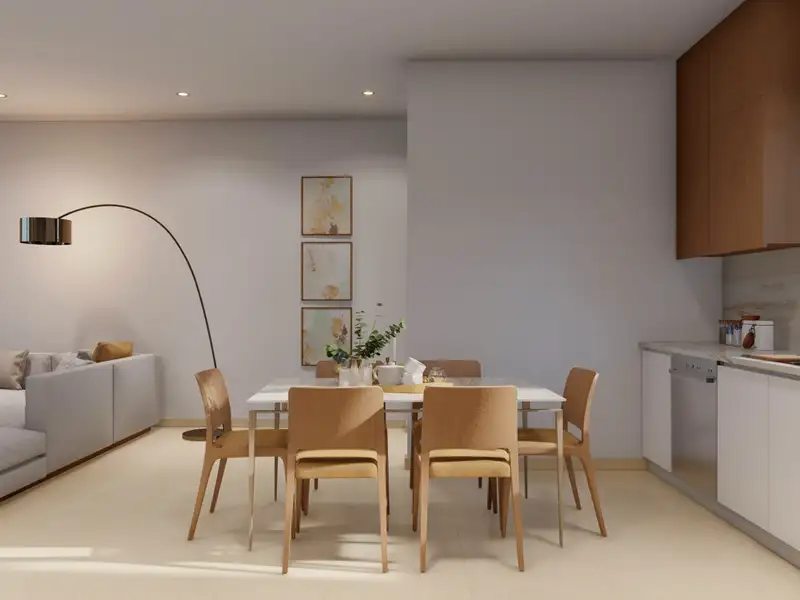 - Spacious open-plan interiors with high ceilings