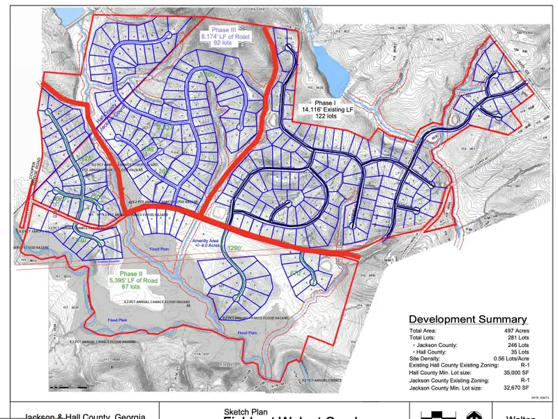 - 345+/- Acres Zoned R-2 with 155 Lots Entitled