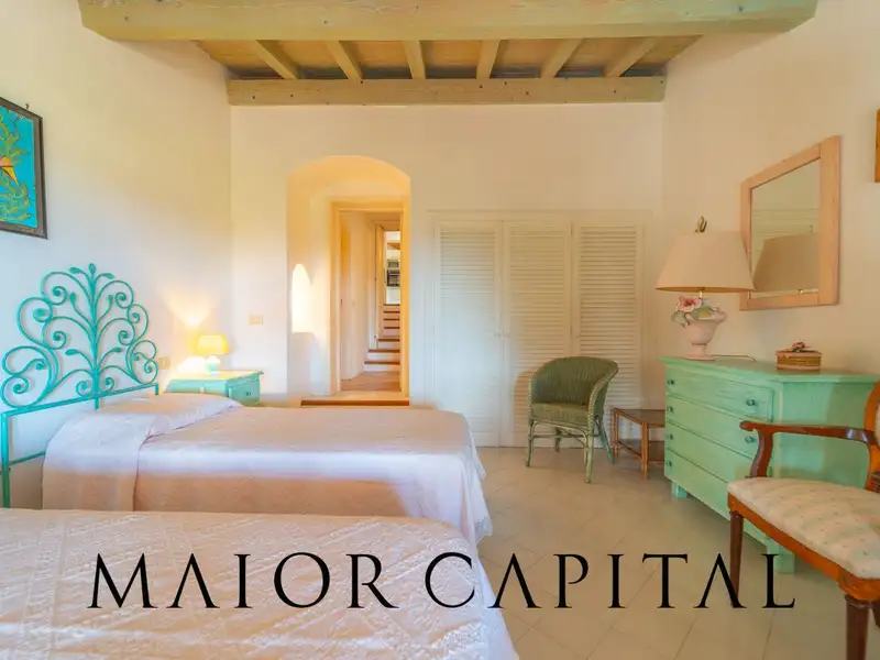There is a place, in the heart of the Costa Smeralda™, where time seems to pass more slowly, where every gaze is lost in the infinite blue of the sea and where the scent of juniper and salt mingles in the air, creating a timeless atmosphere. It is here, in a dominant and reserved position, that this historic villa stands, a dwelling of iconic charm, guardian of unparalleled elegance.