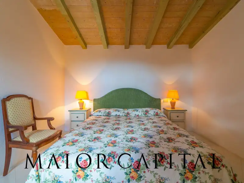 The main living room is a work of art: spacious, airy, with beamed ceilings and large windows that let the landscape become an integral part of the house. Here, the morning sun gently filters through, illuminating the handcrafted furnishings, fine fabrics, local stone floors and finely crafted ceramics. Every detail tells a story, every corner invites relaxation and contemplation.