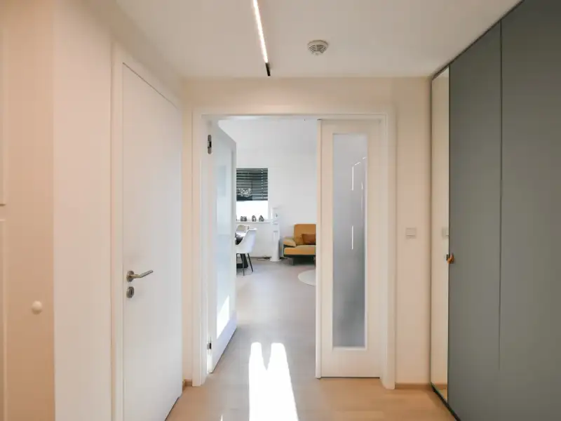 The high standard of equipment includes: triple glazing windows, seamless doors, external electric blinds in the living areas, a smart home system (decentralized KNX system) with control of heating and video intercom, underfloor heating, custom-made kitchen incl. the highest range of De Dietrich appliances, optical internet, and security entrance doors. The apartment is sold without freestanding furniture.