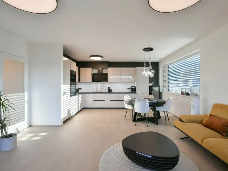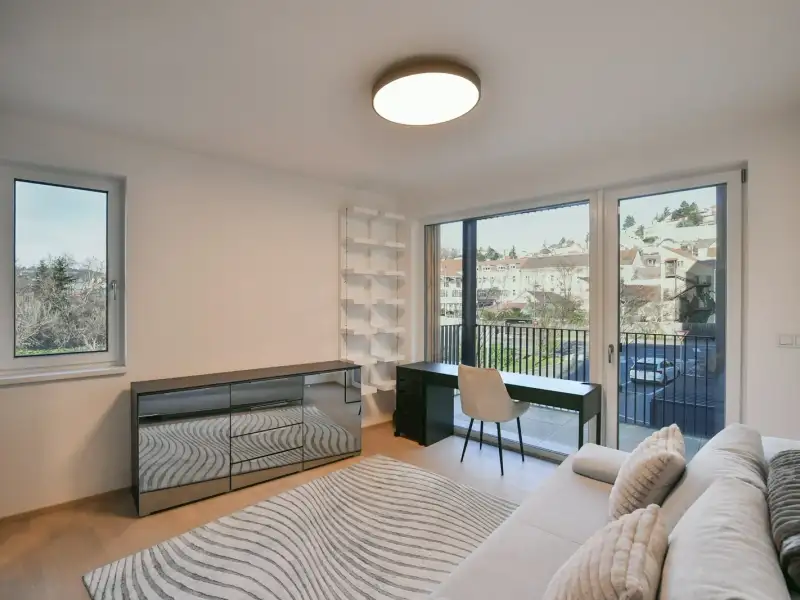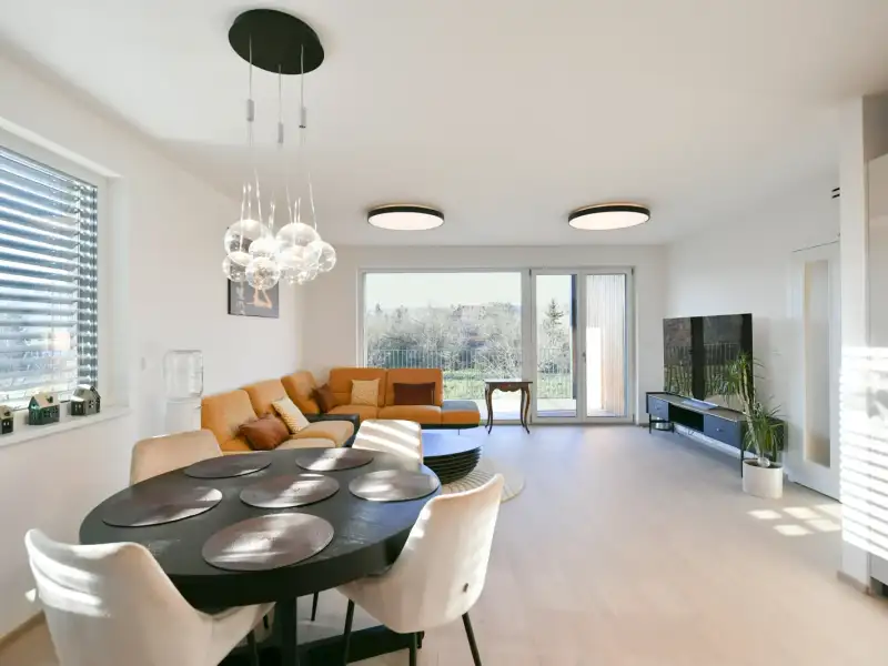 We are offering for sale a unique apartment with a 4+kk layout, with a floor area of 119 sq.m., augmented by 2 balconies (totaling 17 sq.m.), a cellar, and 3 spacious garage parking spaces included in the price - this pleasant benefit significantly increases the property's value and facilitates everyday life. The bright and spacious apartment is located in a modern residential building with an elevator in the "Bydleni Branik" project by Trigema developer.