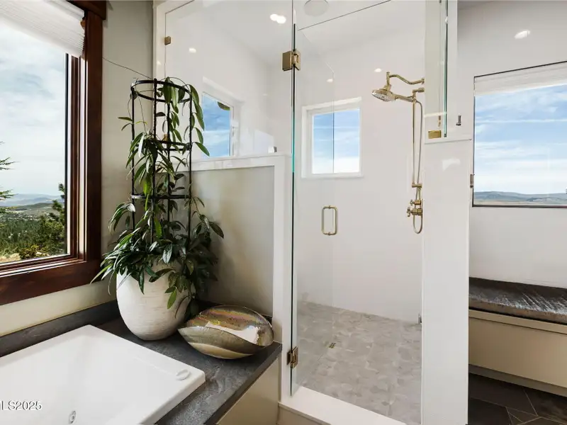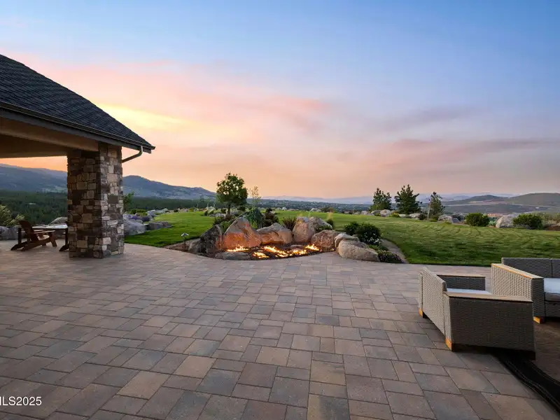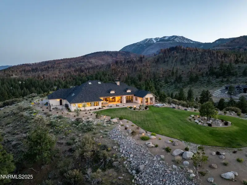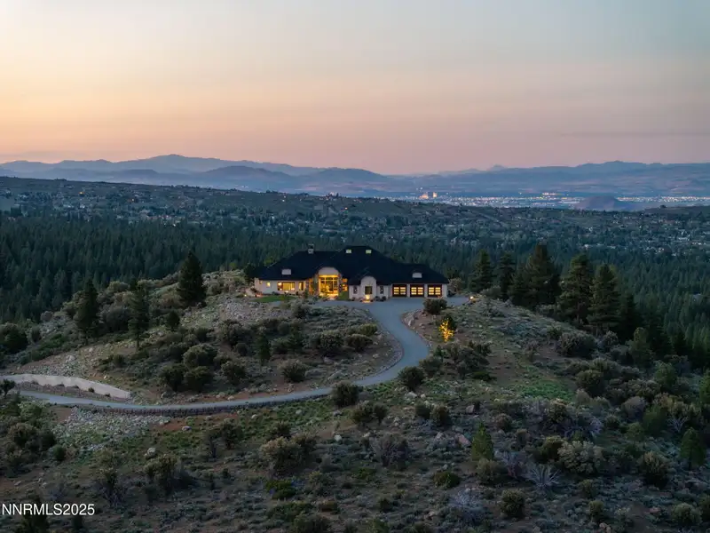 This is what it looks like at the top. Own the CROWN of Reno at 29 Bennington Court—a powerful property, built for bold living on one of the region's largest mountain top lots featuring 360-degree views of Mt. Rose, the city, and the forest. This custom, 4,831 sq ft single-level estate combines privacy, exclusivity, and luxury with three spacious suites, heated quartzite counters on the Kitchen Island, High end Thermador appliances, and Waterstone fixtures. Outside, the terrace features a massive yard, spa, gas firepit, and wood-burning hearth. Rising from St. James's Village, 29 Bennington Court commands the most powerful vantage in Reno. Spanning 6.33 acres across two contiguous parcels, this estate offers uninterrupted 360-degree views of Mt. Rose, downtown Reno, and the Sierra forest canopy. This single-level estate defines the top, geographically, architecturally, and experientially. This is not simply a home with views. It is the highest-positioned property in one of the region's most exclusive gated community—a singular alignment of land, layout, and presence. No other estate combines this scale, privacy, and presence. It does not compete. It leads. The structure is grounded in proportion and permanence. Wide hallways, soaring soffit ceilings, and generous transitions create a deliberate rhythm throughout the home. Material selections emphasize integrity over ornamentation: hardwood in primary living areas, plush carpet in private quarters, and marble thresholds where spaces shift. Skylights are positioned to trace the sun's arc, filling the interiors with natural light throughout the day. Each of the three en-suite bedrooms serves as a fully self-contained retreat—private, quiet, and complete. The primary suite features a steam shower, a deep soaking tub, radiant in-floor heating, and a meticulously outfitted dressing room with mirrored cabinetry, tailored lighting, and integrated storage. A discreet pass-through leads to the oversized laundry room, outfitted with dual washers and dryers, concealed hampers, and extensive cabinetry—designed for lasting function. Designed to balance performance and intention, the kitchen centers the home as a working space and a gathering area. A complete Thermador suite includes a six-burner range with griddle, dual convection ovens, commercial-grade ventilation, and integrated refrigeration. Heated quartzite countertops provide tactile comfort and thermal consistency. Cabinetry is full-depth and soft-close, with Waterstone fixtures chosen for their weight, reliability, and enduring finish. The walk-in pantry includes open shelving, a pebble ice maker, and grocery access to a three-car garage. Exterior living areas are designed for use and longevity. The terrace unfolds to a large patio with outdoor electric heating and a wood burning hearth, a recessed Bullfrog spa, a gas fire pit, and a massive yard. Hardscaping materials, including poured concrete and boulders sourced directly from the site, frame the home within its landscape rather than separate it. The office is not a token room; it is a space for strategy, output, and reflection. Equipped with built-in storage, a seamless flow into the great room, and forest-facing windows, it is designed to support sustained thought and forward movement. Whether the work is creative, operational, or directive, this is a room that holds its purpose. 33 Bennington Court, an adjacent undeveloped parcel, is included in the sale. Build a second structure, hold the land in reserve, or preserve the buffer indefinitely. This second lot represents opportunity and leverage in a gated setting where acquiring additional acreage is nearly impossible. Opportunities like this are never replicated. They're seized. No other property in Reno offers this elevation, this acreage, or this architectural clarity. 29 Bennington Court holds its position without effort—dominant in placement, precise in design, and unmatched in scope. It does not compete. It stands alone.