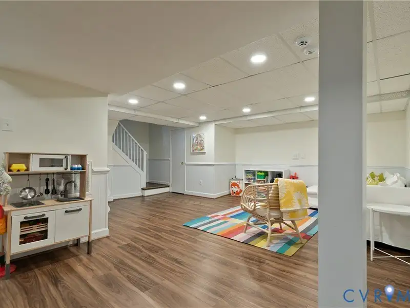 - Finished basement playroom and laundry