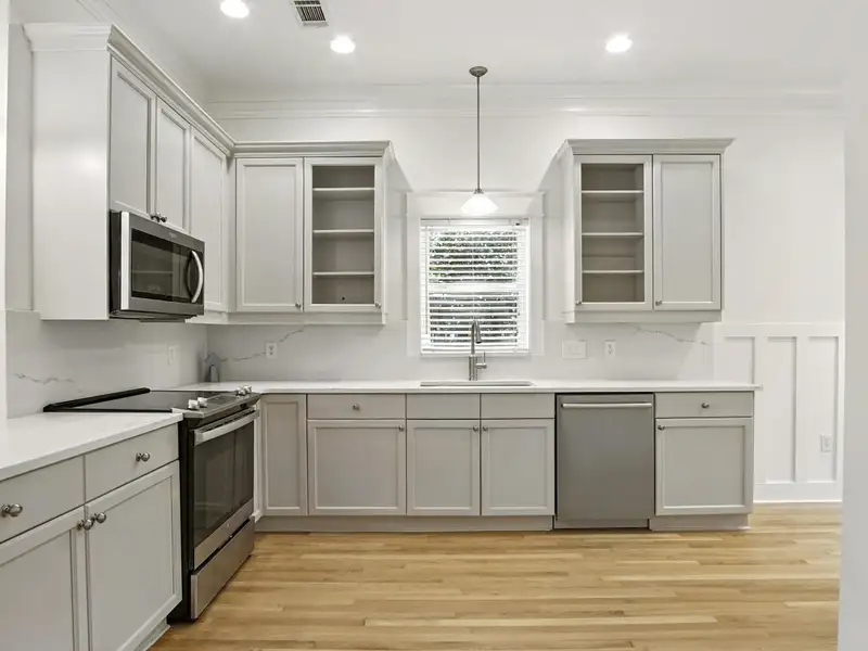 - Quartz countertops in kitchen and baths