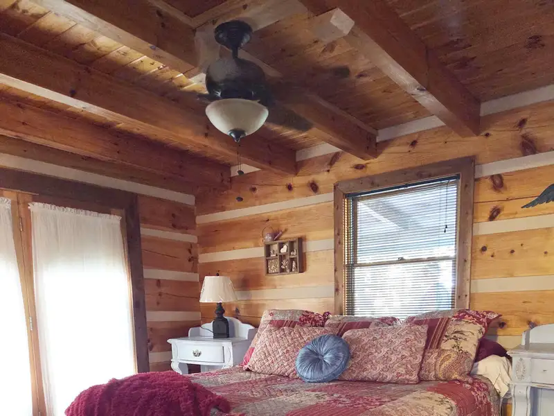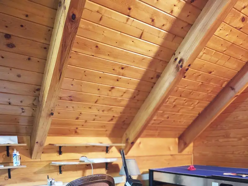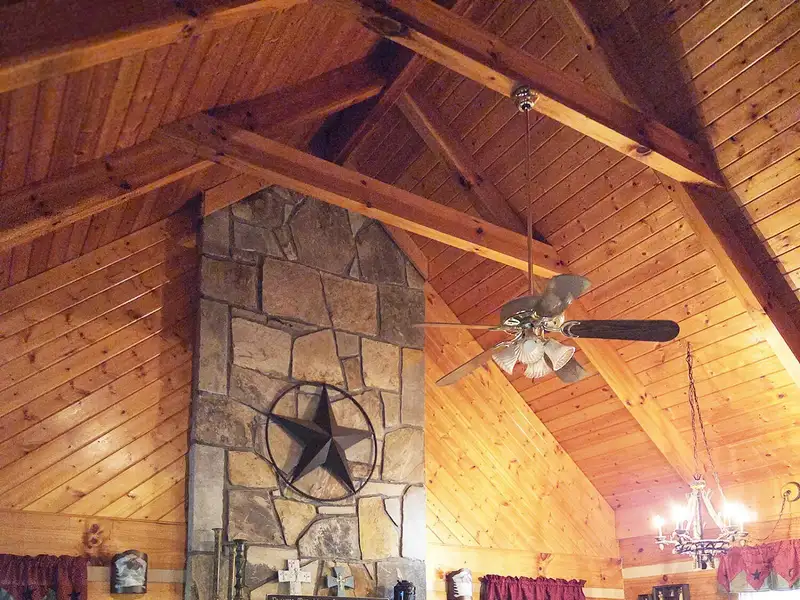 - Cathedral ceiling with exposed beams