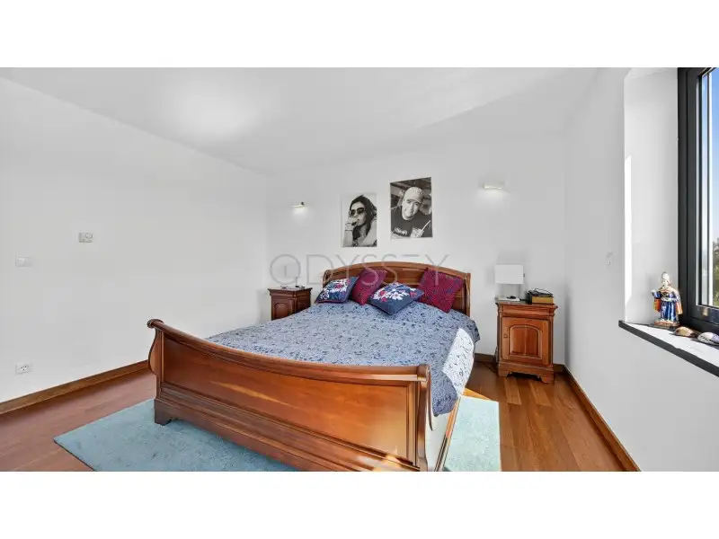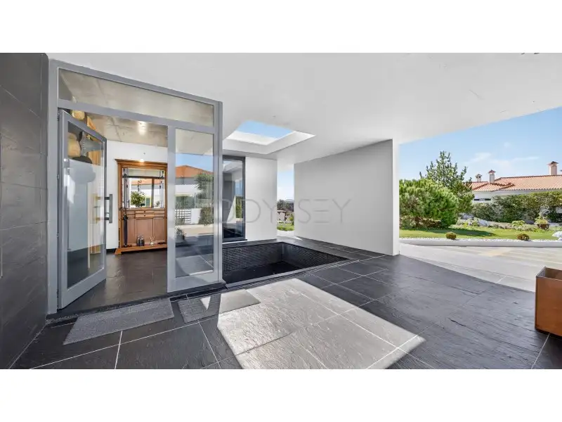 Ao ar livre, a propriedade combina jardins paisagísticos com terreno rústico, oferecendo privacidade e conexão com a natureza circundante. A sua posição elevada proporciona vistas deslumbrantes sobre a serra de Sintra e o Palácio da Pena, combinando tranquilidade campestre com sofisticação arquitetónica.
