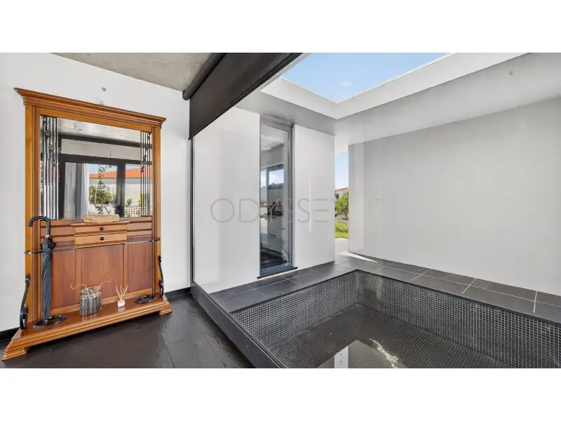 A arquitetura da villa enfatiza a luz, a abertura e a integridade material. As janelas do chão ao teto convidam à luz natural para as espaçosas áreas de estar, destacando os tons quentes dos pisos de madeira e as linhas industriais limpas do teto de concreto exposto. A escadaria flutuante cria um ponto focal escultural que realça o design minimalista da casa.