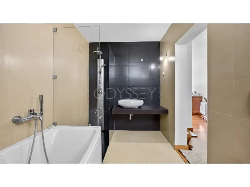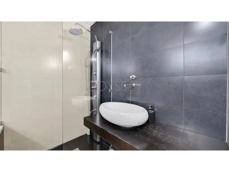 A cozinha é prática e refinada, com uma combinação de fogão a gás e elétrico, forno Miele e geladeira LG InstaView. Cada elemento reflete qualidade artesanal e atenção aos detalhes. Características de conforto, como piso radiante, estores elétricos e um sistema de aspiração central (aspiração central) garantem uma experiência de vida premium durante todo o ano.