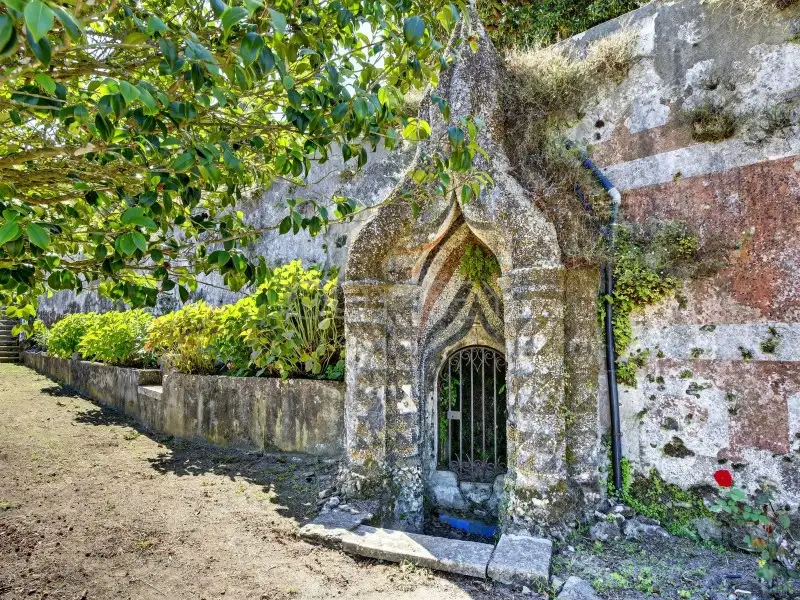 Os jardins da Quinta da Peñaferrim refletem tanto a formalidade francesa como o romantismo inglês, desdobrando-se em relvados em socalcos, pérgulas e caminhos florestais.
