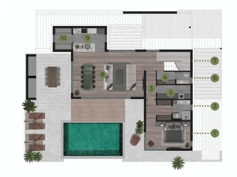 * Quality Construction & Design: Employing only premium materials, our villas are crafted to not only meet but exceed the highest standards of luxury and durability.