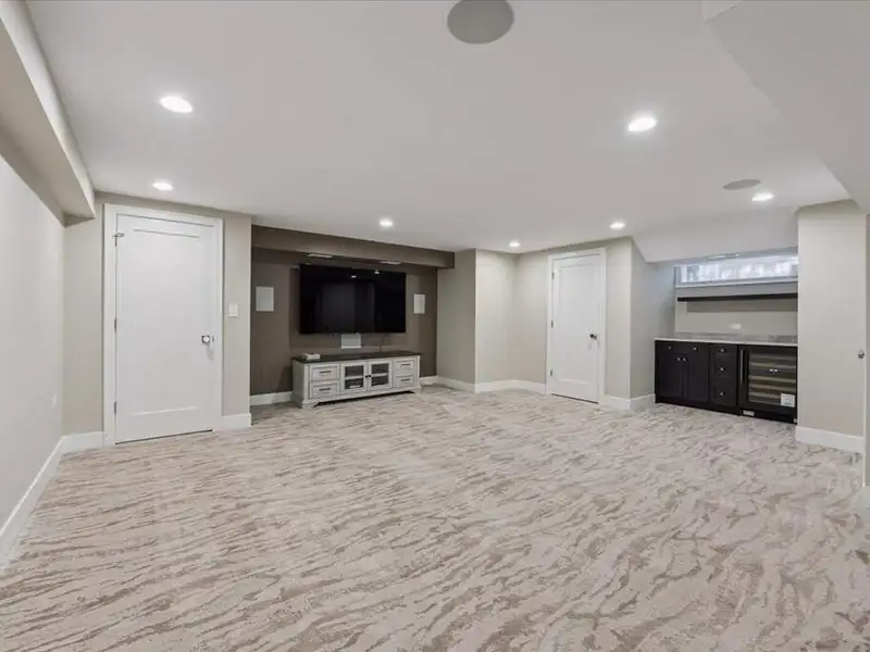 - Renovated media room with beverage center