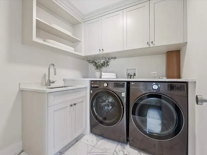 - Heated driveway and attached two-car garage
