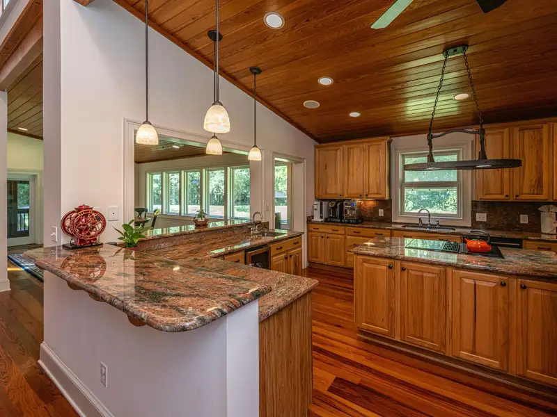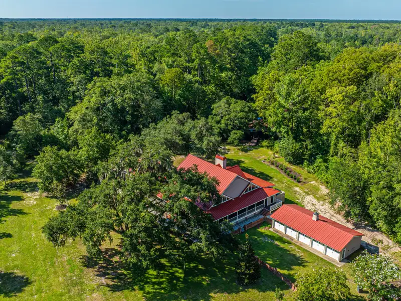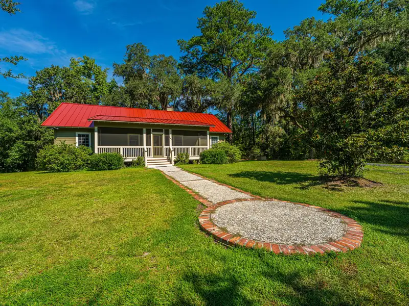 carriage house and irrigation from the nearby well. The house Main was designed as one of the last projects of Doug Corken, a well-known Lowcountry architect. A wide screened porch with burnt poplar screen doors keeps the porch nearly bug free while you sip your mint julep under the cool breeze of the numerous overhead paddle fans. The cypress ceilings on the porch ceiling add to the aesthetics. The exterior of the house has six large trapezoidal windows. One window for each of the vaulted ceilings in the four bedrooms, and two windows at each end of the main living room with its massive fireplace. The Carolina room in the main house faces the canal. The full length of the Carolina room is covered with windows for unobstructed view of wildlife and the canal. It was completed in approximately 2015 at the time the screened cook shed is was built . The screened cook shed is great for entertaining and is approximately 1,000 Sq Ft. under roof. The deck behind the guest house's main bedroom was replaced in 2025, and wooden hand railing on the deck and steps were replaced with durable black metal. A chimney lies just outside of the guest house which would make a great spot for an outdoor fireplace. Approximately 1 hour to Charleston or Savannah, 30 minutes to Beaufort. 45 minutes to Hilton Head.