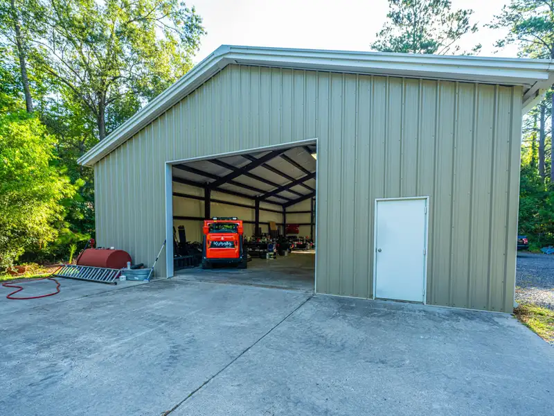 deer condominiums are located amid shooting lanes in the back of the property. Portable heaters have enabled the present owner to hunt regardless how cold the weather may be. There is a well-developed road system throughout the property to enable hunting and sightseeing. The area of River Oaks adjacent to the Combahee is a mix of wetlands, hardwood ,wetland vegetation, swamp, cypress trees, and planted pine. A 135 Yard rifle and pistol range is on the property with a heavily built commercial bullet bunker to eliminate the potential for lead contamination and to provide a safer place to zero rifles and practice shooting. As you enter the property through the electric wrought iron gate, to the right is a 2400 sq. ft. equipment shed with two electric overhead doors and adjacent to it