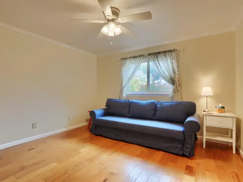 - Open floor plan with wood stove