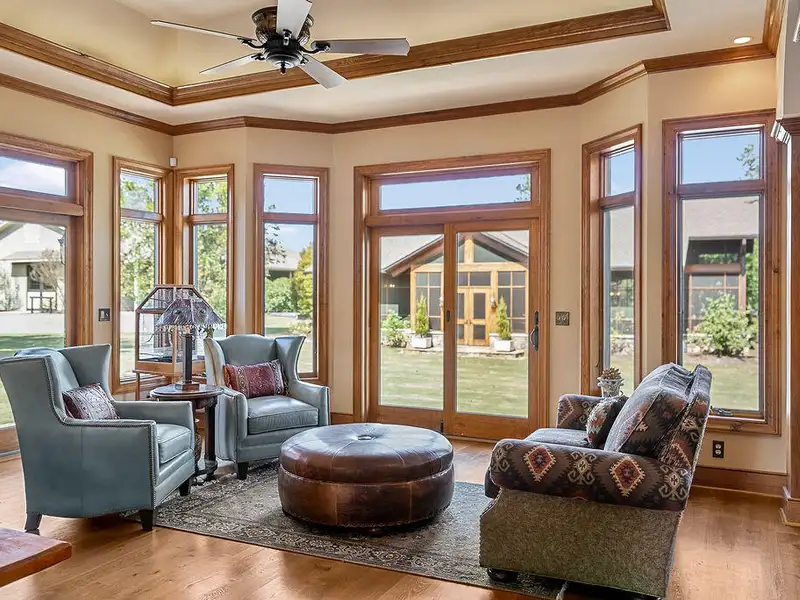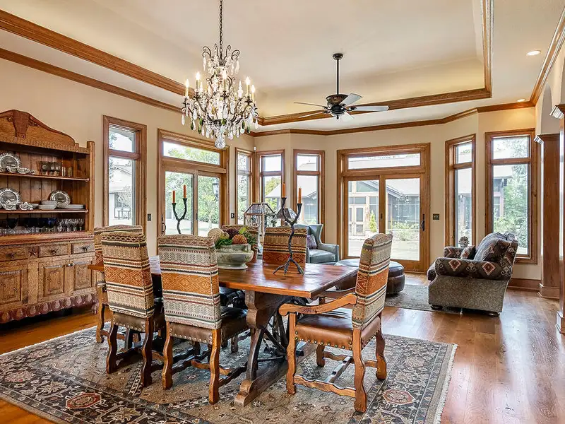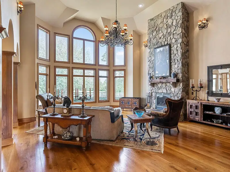 The 2009 Grant Larlee-built home features a stucco & riverstone exterior and stunning living spaces, beautifully appointed with luxurious finishes and architectural accents, including European old-growth white oak wide-plank flooring, artisan lighting, and a dramatic 18-ft stone fireplace. The light-filled Great Room, Dining Room, and Keeping Room flow seamlessly for easy everyday living and entertaining.