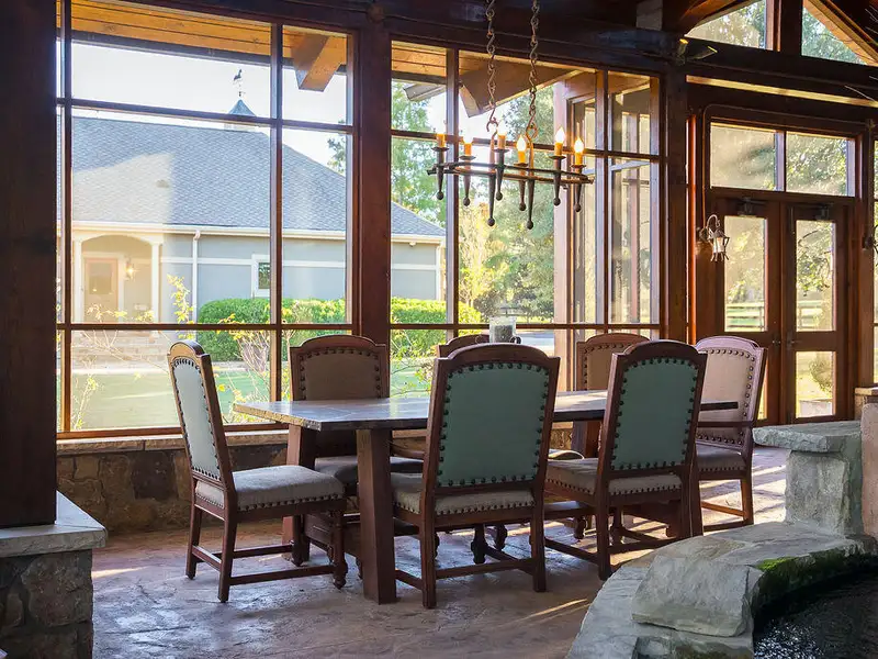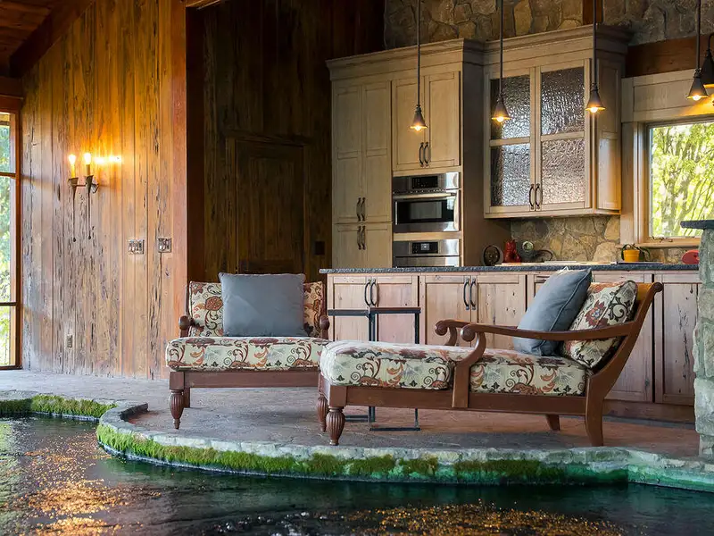 Looking for a signature place to relax and entertain? The estate at 1029 Shell Bluff includes an architectural jewel, that we call the Serenity House. This 2016 enclosure is rich in texture with wormy cypress interior walls, Birnam wood beams and copper screens. Designed by Cam Scott of CFS Architects, the Serenity House offers features that appeal to all the senses with multiple areas for gathering, relaxing, cooking & dining centered around a magnificent architectural koi pond and waterfall designed for resort-style tranquility.