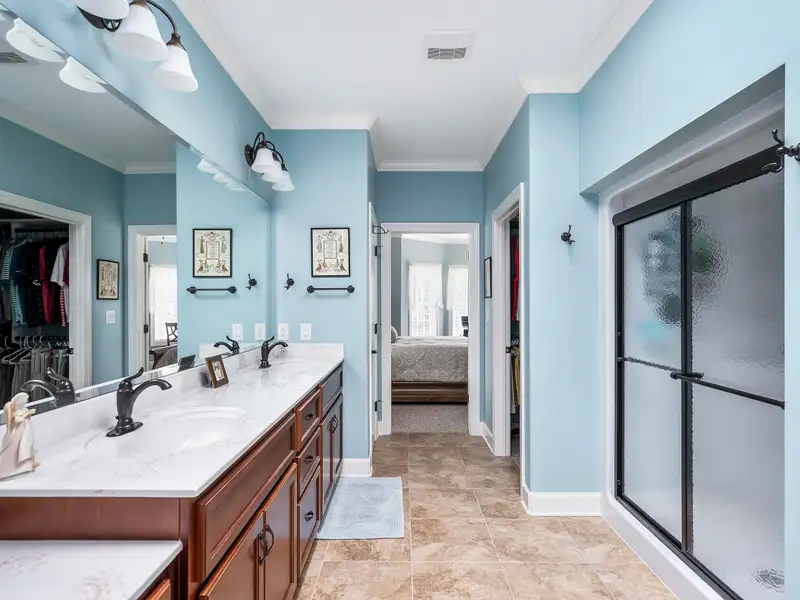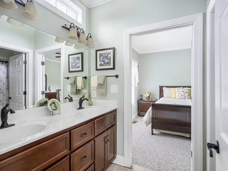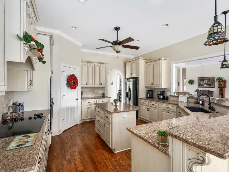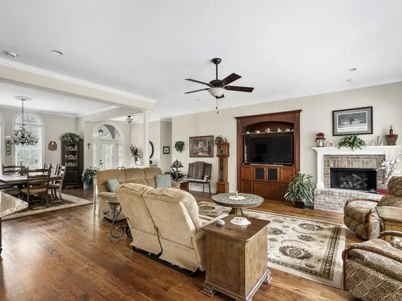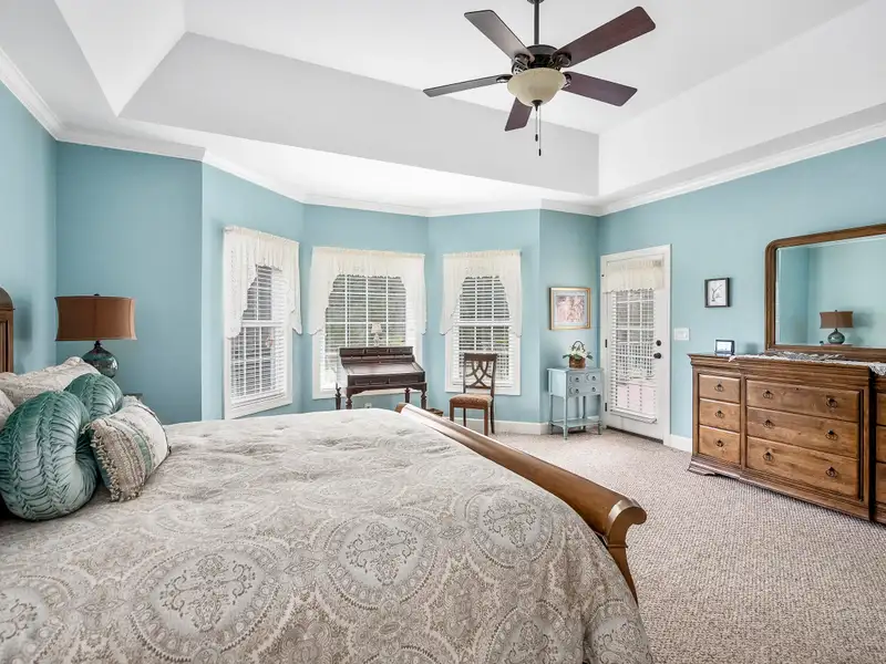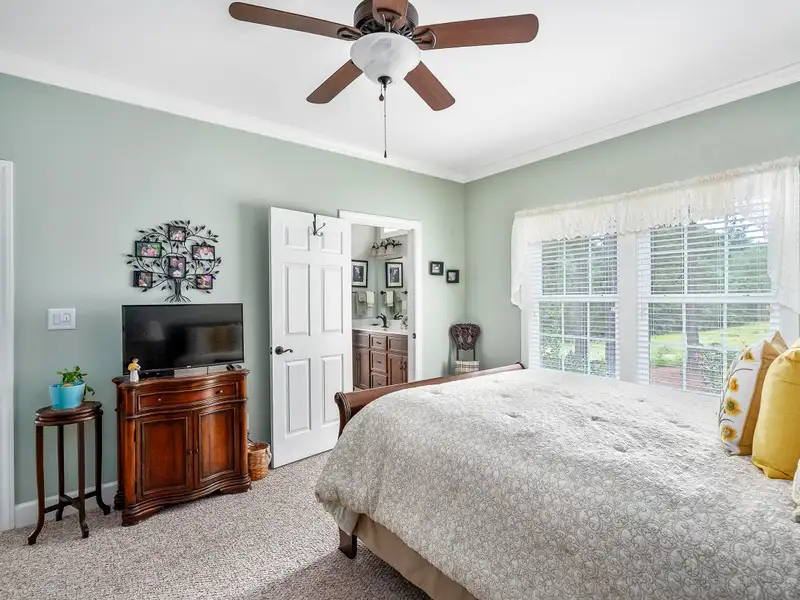 Classic upgrades, a commanding golf view location and the ability to restyle the partially finished downstairs space into whatever one desires defines this 3 Bedroom, 3 1/2 Bath exquisite all-brick Cedar Creek home located on a quiet cul-de-sac ( main level 2875 sq.ft [approx.] plus 955 sq.ft. partially finished lower level). Hardwood floors throughout the living area, smooth ceilings, lovely recessed lighting, a raised hearth and Palladian style windowing are just some of the features that make this home with a 35' x 15' Trex deck super attractive. The wide-open and inviting Foyer, Great Room w/beautiful built-in, Formal Dining room w/wainscoting and the spacious Kitchen / Bayed Dinette all offer 10' ceilings. The well-appointed Kitchen has bright upgraded cabinetry, a 4' work island, extensive granite countering and a convenient walk-in pantry. The Master Suite features a tray-ceiling and bayed Primary Bedroom as well as a sizable ceramic-tiled Bath with a dual sink vanity and attached make-up table plus 2 large walk-in closets. A vaulted ceiling Office / Study offers great flex space attractively amended with Palladian style windows and built-in desk and cabinets. In addition, the split floorplan has 2 good-sized Guest Bedrooms - one has dual sliding door closets and the other a large walk-in closet (excellent storage abounds in this well-designed home). An attractive Jack & Jill Bath is conveniently shared by both of these Bedrooms. A 12 1/2' Laundry has ample cabinetry, an attractive soaking sink and a handy clothes-hanging bar. A definite highlight to this home is afforded by the Trex deck which has magnificent views of the entire par 3, 11th & the teeing area of the 12th holes of the Cedar Creek course. The 955 sq.ft. lower level is accessible by a carpeted stair & is a partially finished wide open area with a completed full Bath. This space can be easily converted to whatever the buyer chooses or left as the temperature-controlled storage / work area it currently represents. Also on the lower level (outside entry) is a 19' x 18' poured concrete work / storage space that, with its high ceiling, makes it a great work shop, tool storage or potting area leaving the 2 car Garage uncluttered. Professionally landscaped with a well for the inground irrigation. When combined with all the amenities Cedar Creek offers, this immaculate home is definitely BETTER THAN NEW!