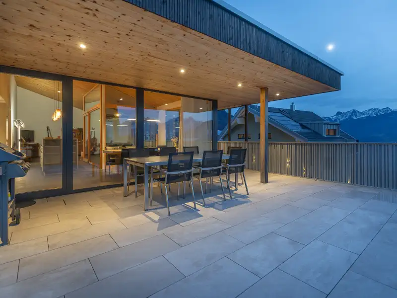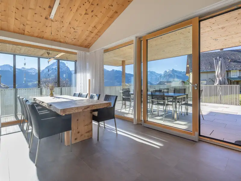 - Offener Wohnbereich mit bodentiefen Fenstern