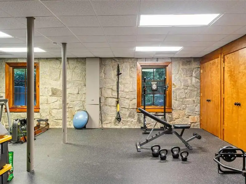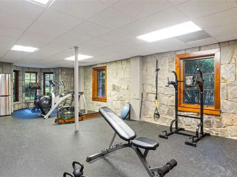 - Lower-level fitness room with sauna