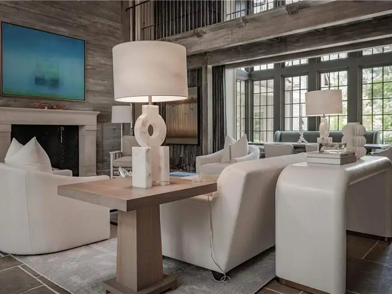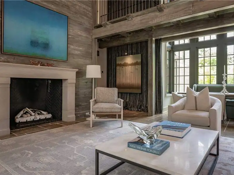- Oak floors and limestone fireplaces