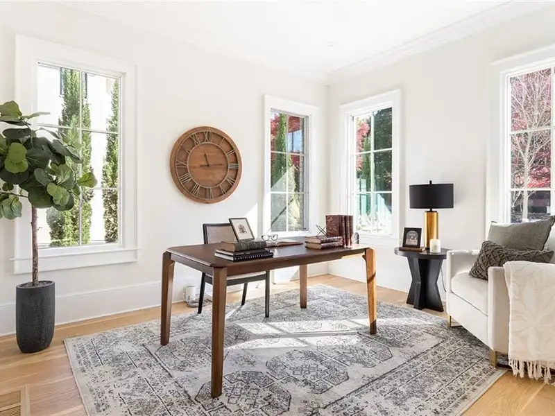 Welcome to modern luxury in the heart of Buckhead. Completed in 2023 and tucked along a quiet, coveted street, this newer-build beauty blends timeless design with todays most sought-after features. A double door entry framed by gas lanterns sets the tone, opening into a dramatic double foyer soaked in natural light. Inside, wide-plank light oak floors, neutral white walls, and soaring 10-foot ceilings create an airy, refined backdrop for everyday living and unforgettable entertaining.Designed as an entertainers dream, the main level flows effortlessly while still feeling warm and inviting. The chefs kitchen takes center stage with a commercial-grade Viking appliance suiteincluding an 8-burner rangecustom vent hood, a large island, and an eat-in breakfast area surrounded by windows. The little touches like the leather-wrapped and gold plated McGee & Co. pendant lights give the space an understated, quiet-luxury elegance. Just off the kitchen, a dedicated dining room is anchored by a fully equipped cocktail bar with wine storage and pantry, making dinner parties effortless.The kitchen opens to an expansive living room with a fireplace and accordion doors that blur the line between indoors and out. Step onto the walk-out patio overlooking the pool and outdoor fireplacean ideal setting for summer gatherings or cozy fall nights. A scullery, main-level laundry room, powder room, and private grilling deck make daily living seamless. A main-floor bedroom with full bath offers flexibility for a home office or guest suite. A three-car garage completes the main level.Upstairs, the primary suite is a true retreat with a massive custom walk-in closet and a spa-inspired bathroom featuring double vanities, a frameless shower with double showerheads (even tall buyers will rejoice!), and a freestanding soaking tub. Three additional bedroomseach with en suite bathsprovide comfort for family or guests. A second living room with fireplace and a second laundry room add incredible convenience.The finished terrace level includes a full bathroom and versatile spaces ready to adapt to your lifestylewhether you envision a game room, gym, guest suite, or even a recording studio in the unfinished flex space.The fenced backyard offers low-maintenance luxury with a sparkling pool and hardscaped lounging areas perfect for hosting. For buyers seeking more green space, the landscaping can easily be expanded. The level front yard and sidewalk-lined streets create a true neighborhood feelwith the added benefit of hearing kids play just beyond your front door.Located in the highly regarded Morris Brandon Elementary zone and moments from Atlantas top private schools, this home offers both luxury and lifestyle. With its thoughtful design, exceptional entertaining spaces, and coveted Buckhead location, this is a forever home waiting for its next chapter.*** For those seeking a seamless move-in experience, designer furnishings can be purchased separately.