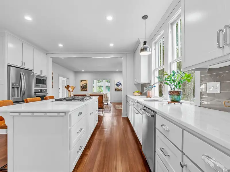 - Large kitchen with quartz counters