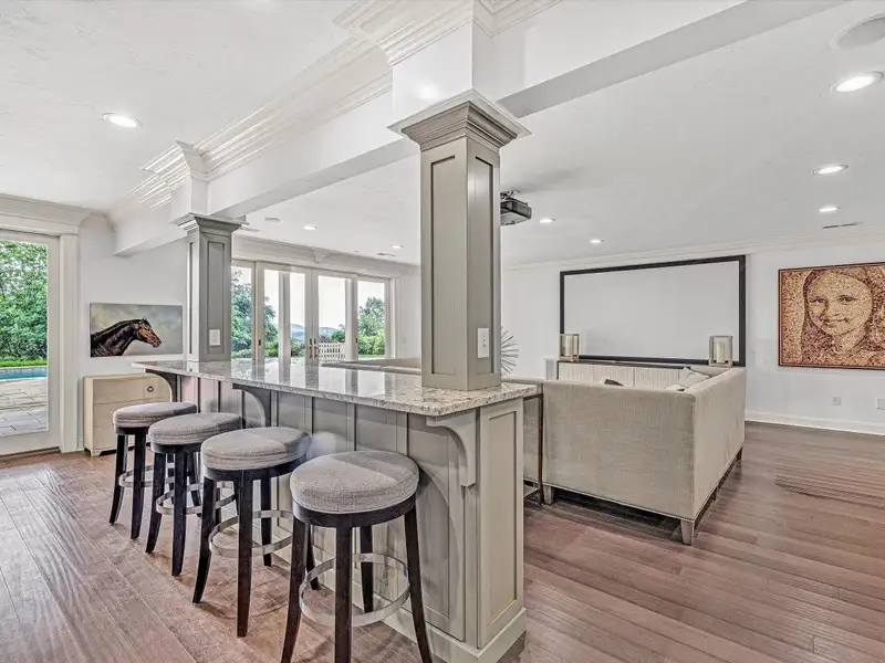Serene Luxury! Entering the secluded and fenced estate through a beautiful gated drive, this retreat is perched on a knoll surrounded by it's 110 acres with breathtaking panoramic views. All land is easily accessible by the many ATV trails throughout. An outdoor oasis awaits on the vast patio. Swim or relax in the infinite pool while enjoying unobstructed views. At meal time choose your own fresh vegetables in the raised garden beds. There is also another abundance of storage ideal for long-term food plans. The 4 car attached garage doubles as a year-round built-in basketball court. Additional 4 car detached garage for cars or other storage. The oasis continues on the lower level, with a complete 2nd kitchen, a theater room, wine cellar, huge workout room/flex space. The owner's