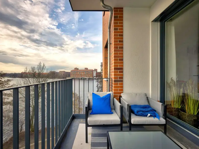- Spacious south-facing terrace with river view