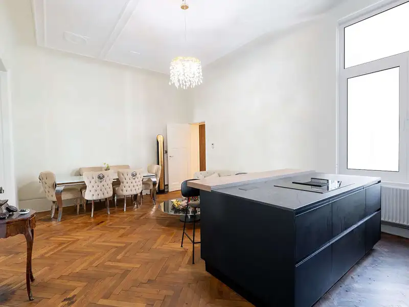Typisch für den Altbau ist nicht nur die Raumhöhe, sondern auch der durchdachte Grundriss: Der vordere Wohnbereich lädt zum Zusammensein ein, während sich die Schlafzimmer angenehm zurückziehen – perfekt für Familien, Paare oder alle, die Wohnen mit Anspruch suchen.