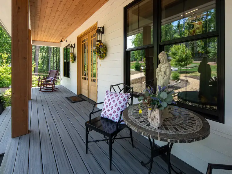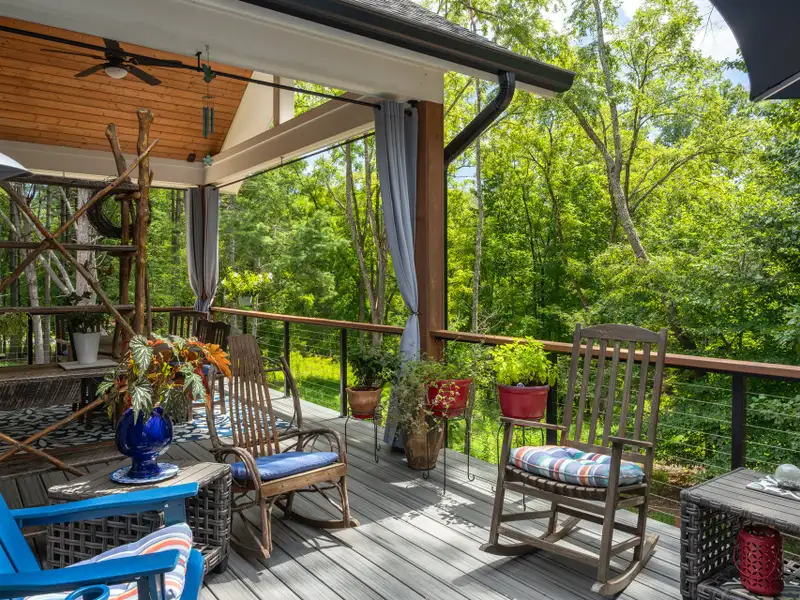 - Expansive rear porch with fireplace