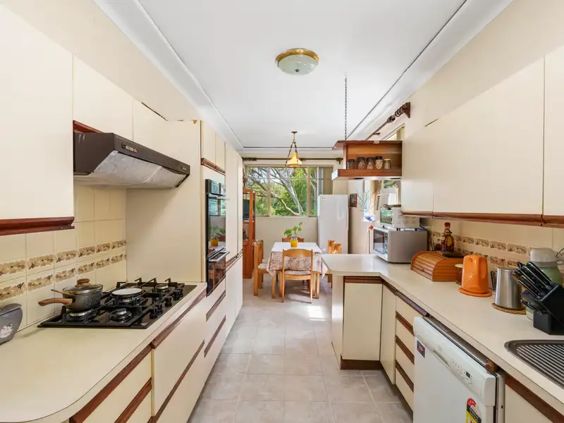 - Original kitchen with timber cabinetry, breakfast bar area, oven, range hood, gas cooktop, dishwasher and plenty of cupboard storage.