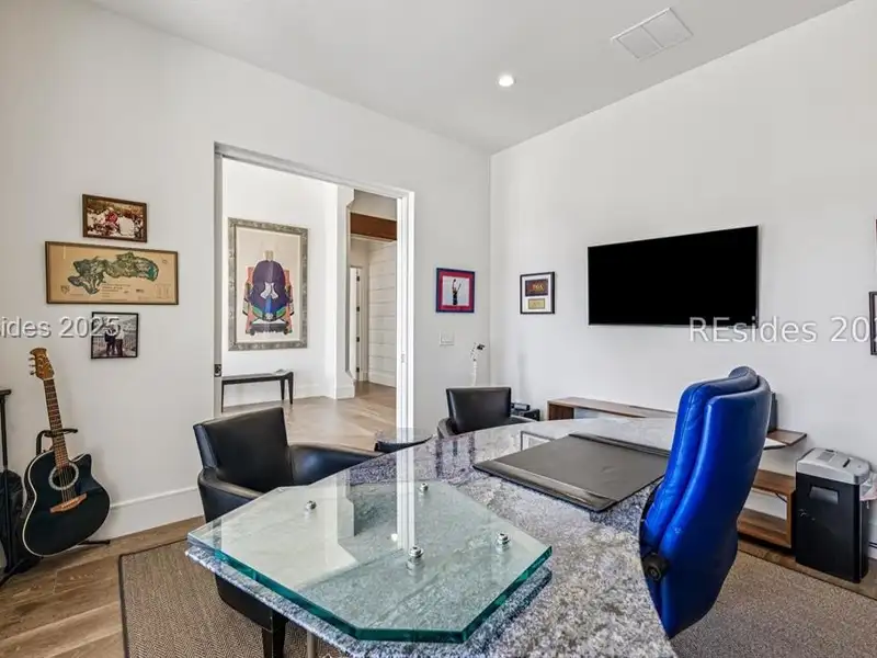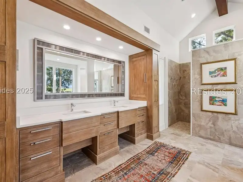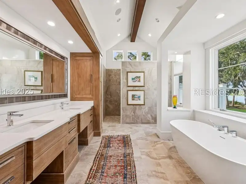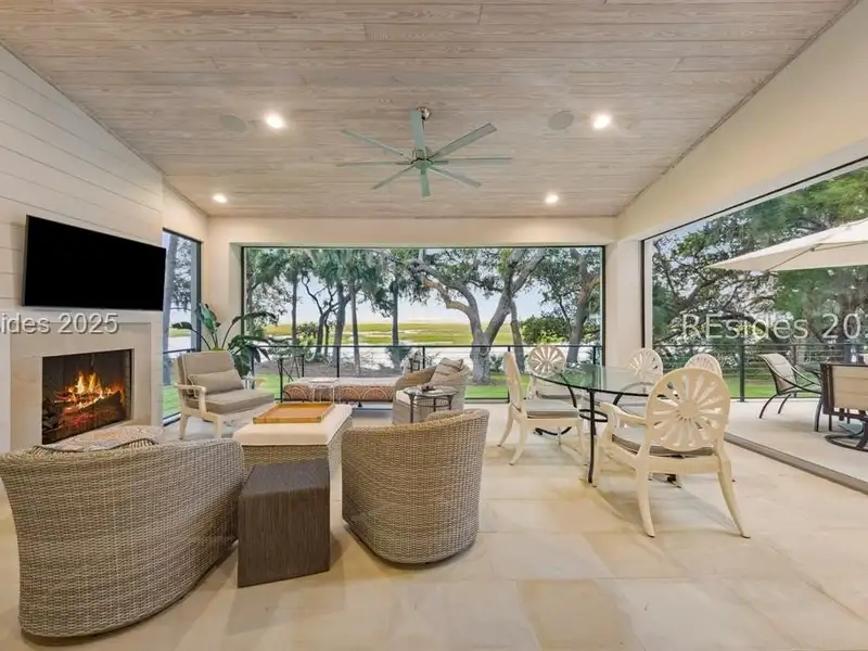 Experience refined Lowcountry living in this award-winning 2023 custom-built masterpiece, designed by a renowned Dallas architect and nestled amidst breathtaking marsh and river views. Showcasing exceptional craftsmanship with bespoke black walnut and white oak cabinetry and beams, this home earned the 2023 Light House Award for Best Kitchen, Best Bathroom, Best Exterior, and Best Overall. Every detail speaks to luxury--from the architect-designed entry door and three ensuite bedrooms to two elegant wood-burning fireplaces with gas options, custom cast stone surrounds, and dual private offices. Entertain effortlessly on limestone patios, a screened rear porch with electric screens, and enjoy the oversized three-car garage with epoxy floors, Sonos sound system, art lighting, and stunning ceiling designs. This is coastal elegance at its finest.
