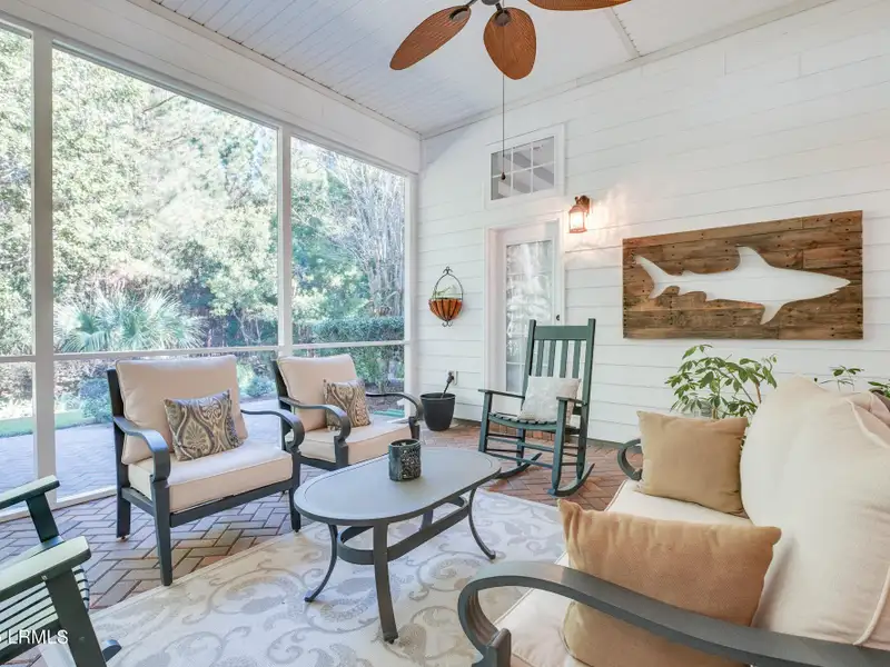- Screened-in lanai facing woods